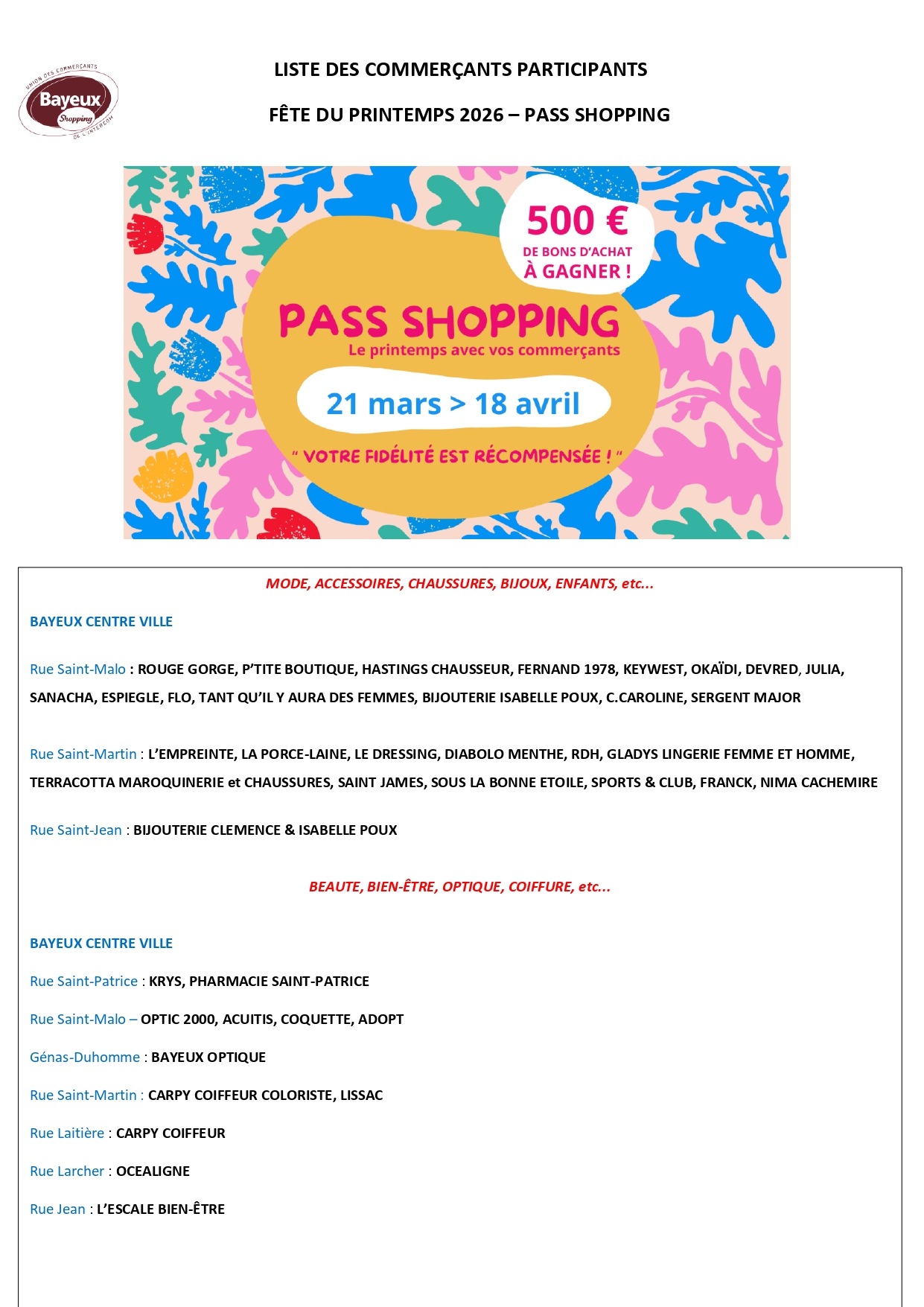 Le mardi 21 avril, dix gagnants seront désignés et remporteront 50 € en chèques cadeaux Bayeux Shopping !